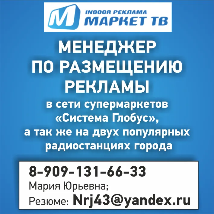 К сожалению (или к счастью) в данный момент мы ищем персонал только в районах Кировской области, однако при поиске в Кирове мы обязательно воспользуемся ресурсами Вашей газеты.
